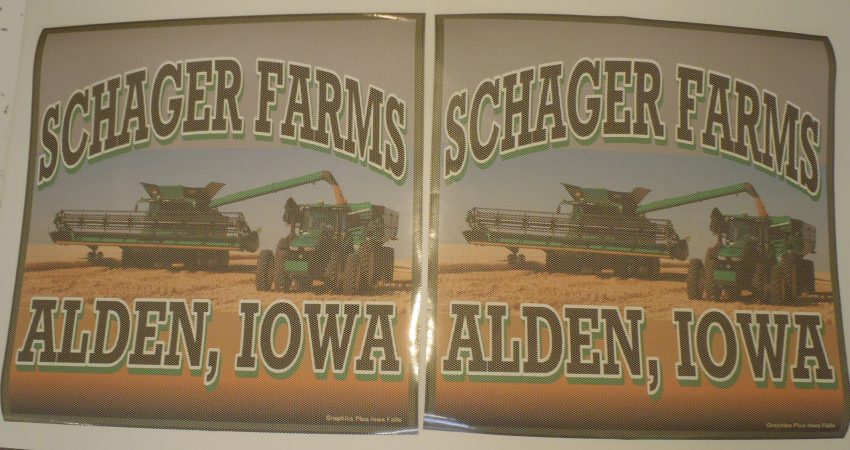 These see-thru vinyl decals were recently done for a local farmer. These decals were placed on the rear crew cab windows of a pickup truck. See-thru decals also act as sun screens blocking the sun but allowing necessary visibility. Graphics Plus also makes decals and magnets for vehicles, along with yard signs, banners up to […]