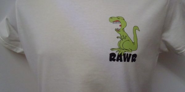 Have someone into dinosaurs? We can do a shirt for them. Shirts can be done in full color with the design in a variety of locations. See what we have available.